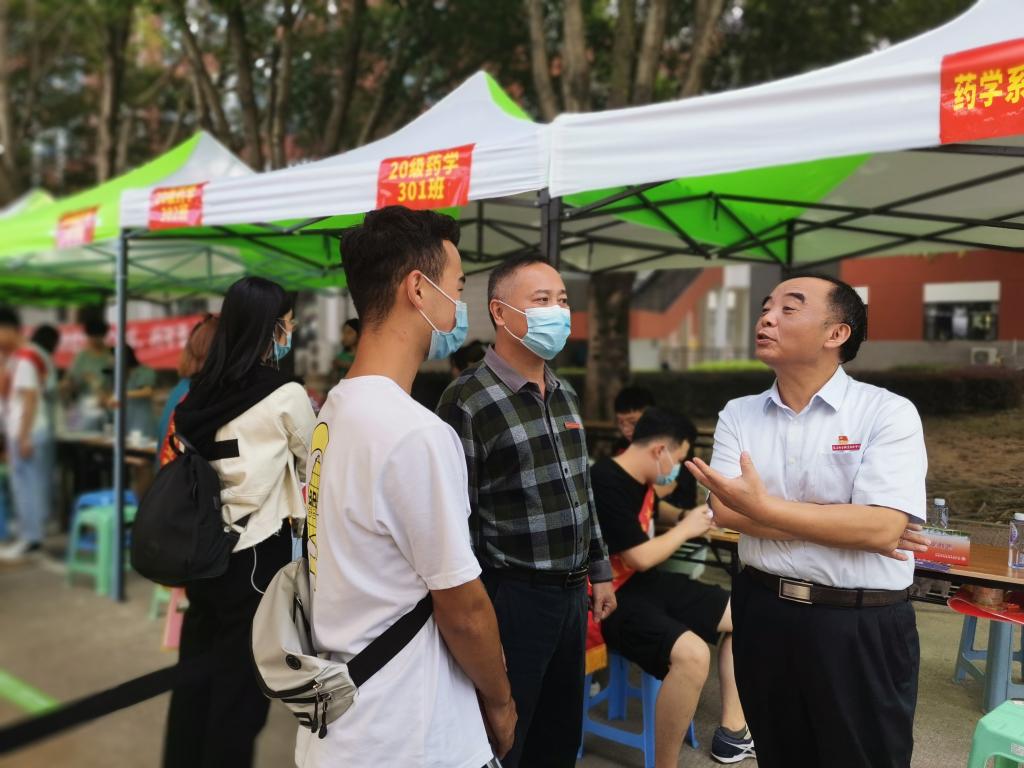 根據疫情防控的要求,新生家長及陪同人員不得進入校區內,藥學系團總支組織了300多名青年志愿者熱情地組織新生有序入場辦理報到手續、幫助新生搬運行李至宿舍。學院紀委游鋒書記、藥學系黨總支鄭力宏書記、肖健副主任、李泳寧副主任、黨總支賴文金副書記和新生班輔導員一同走訪迎新點和2020級新生宿舍,他們詳細詢問新生報到情況,并與新生親切交談,為新生介紹學校和系部情況,耐心地解答新生們提出的各種疑問,勉勵同學們盡快轉變角色,以嶄新的面貌投入到大學生活當中,努力做到學有所成、學有所獲。