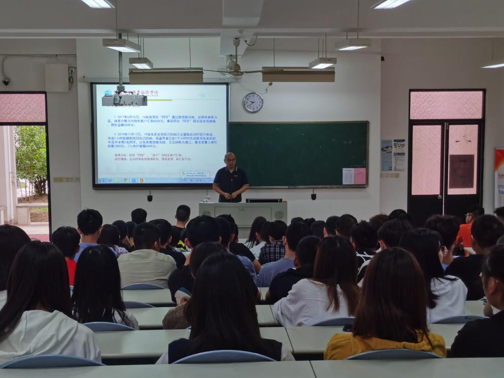 葛能杰圍繞疫情防控和意識形態(tài)領(lǐng)域中常見的安全問題、隱患,向同學們展示了一個個鮮活的安全事故案例,見之于未萌、防之于未然。
