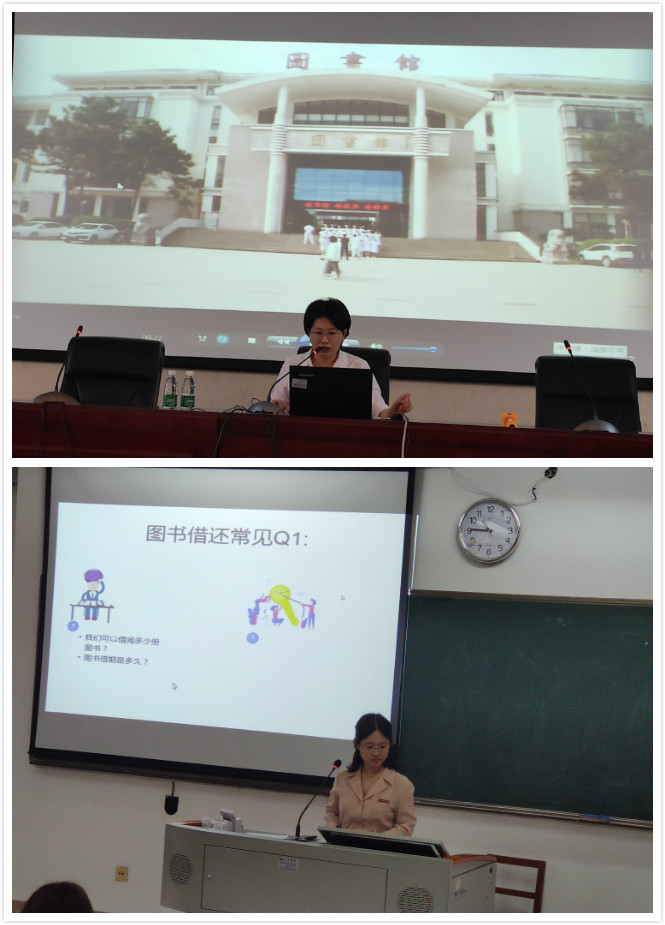 劉穎、林玲向同學們講解了圖書館的紙質(zhì)、電子館藏情況;書刊借還流程;閱覽基本規(guī)則,并希望同學們以書為伴、汲取營養(yǎng)、內(nèi)化于心。