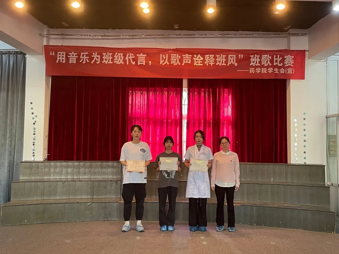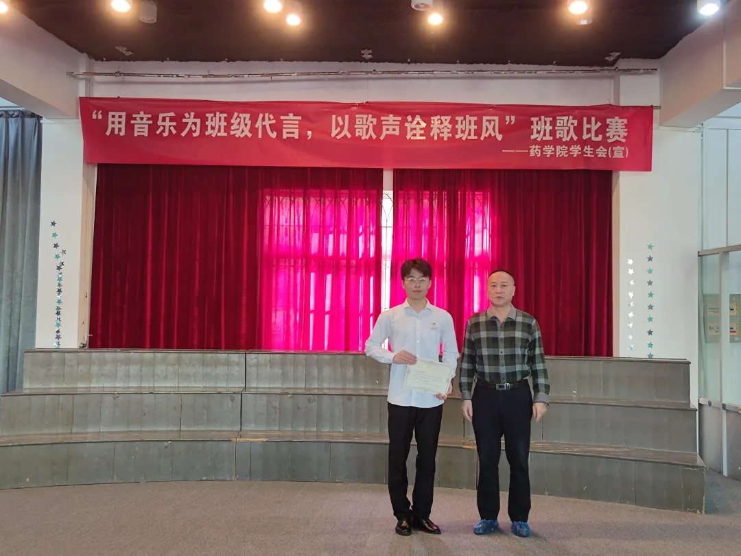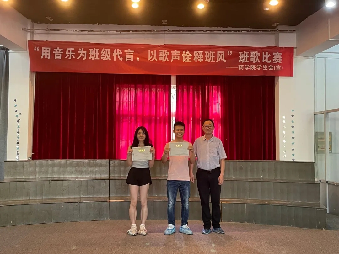 本次比賽共有16個(gè)班級(jí)參加,班歌選材主題突出、青春靚麗、極富感染力和感召力。比賽中,有的班級(jí)充分發(fā)揮學(xué)生的特長(zhǎng),緊緊圍繞班級(jí)展示的主題,融入舞蹈等藝術(shù)表現(xiàn)形式,集中展示了班級(jí)理念、班風(fēng)、班貌,體現(xiàn)出不同班級(jí)文化特色。最后經(jīng)過激烈角逐和評(píng)委們打分,21藥經(jīng)管301班獲得一等獎(jiǎng),21中藥學(xué)301班、21藥學(xué)307班獲得二等獎(jiǎng),18藥學(xué)501班、21藥學(xué)301班、21藥學(xué)302班獲得三等獎(jiǎng)。藥學(xué)院關(guān)工委鄭力宏等分別為獲獎(jiǎng)班級(jí)代表頒發(fā)了獎(jiǎng)狀。