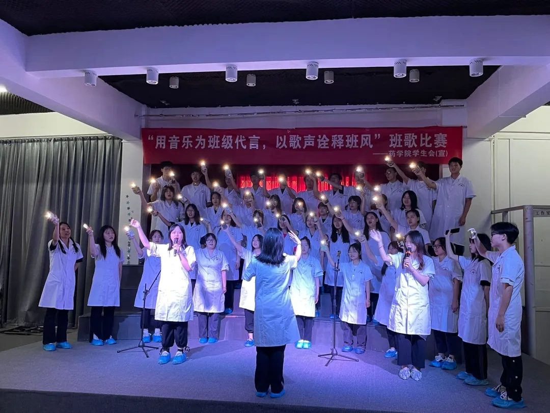 為進(jìn)一步加強(qiáng)大學(xué)生思想道德建設(shè),展示新時(shí)代大學(xué)生的青春風(fēng)采,豐富校園文化生活,增強(qiáng)班級(jí)凝聚力,藥學(xué)院于2022年5月19日下午在明湖三樓師生活動(dòng)中心舉辦以“用音樂為班級(jí)代言,以歌聲詮釋班風(fēng)”主題的班歌比賽。藥學(xué)院關(guān)工委鄭力宏副主任、黨總支賴文金副書記、肖健副院長(zhǎng)以及全體輔導(dǎo)員參加了本次活動(dòng)并擔(dān)任比賽評(píng)委。
