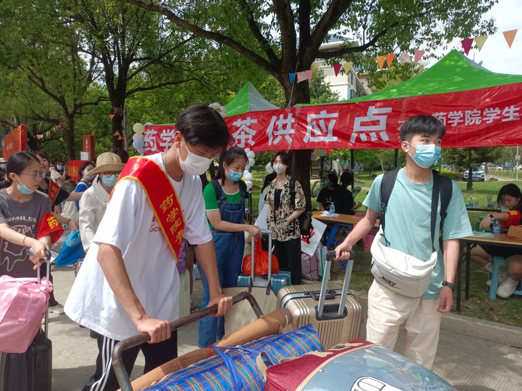早上7時,藥學院志愿“精神小伙”們便開啟了一天的迎新工作。中午時分,炙陽當空,汗水縈繞在青年的眉間,志愿者們的熱情“輸出”,讓新同學感受“學長”、“學姐”的藥學友力。