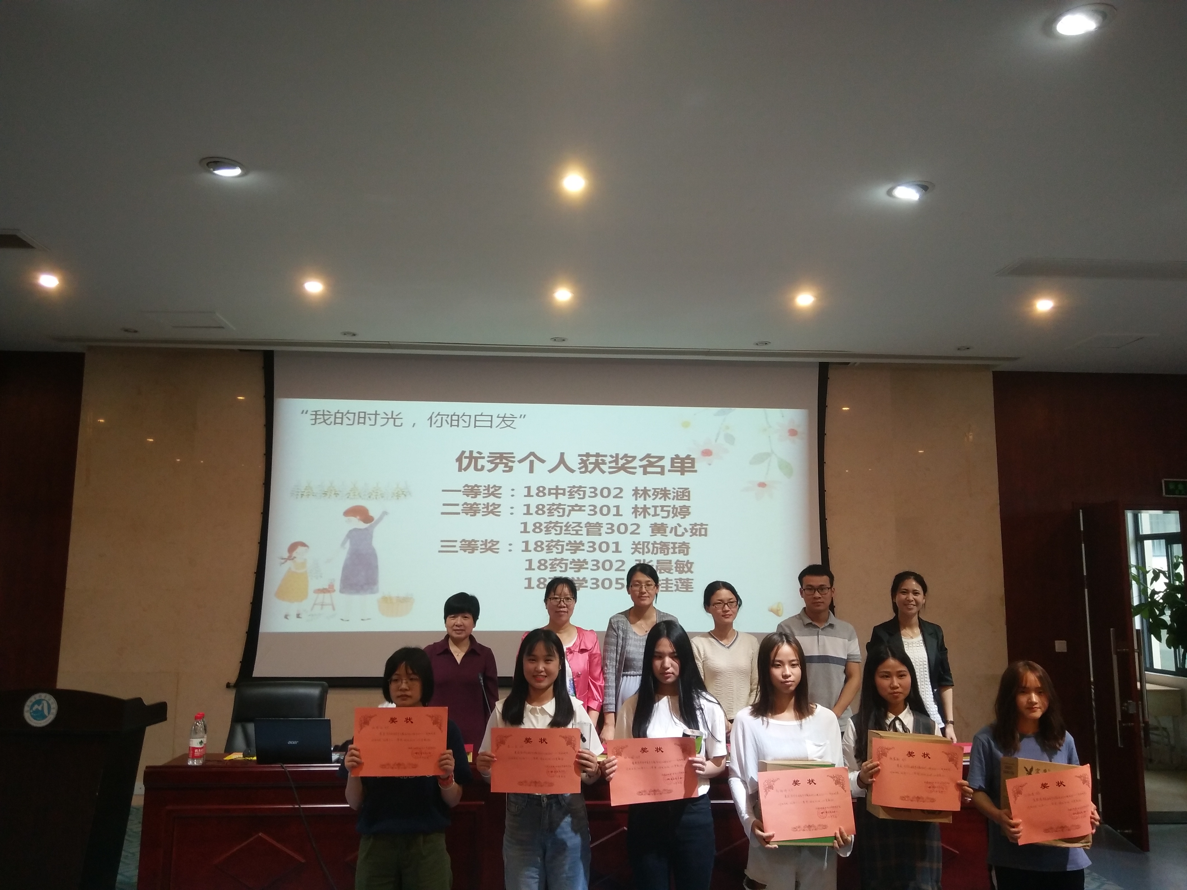 大會(huì)以觀賞本次“母親節(jié)專題系列活動(dòng)”學(xué)生的優(yōu)秀作品拉開序幕。觀看完視頻,使我們感受到同學(xué)們對(duì)母親的濃濃愛意和感恩之情。緊接著,頒發(fā)榮獲活動(dòng)“關(guān)于媽媽,你知多少”一二三等獎(jiǎng)班集體級(jí)獎(jiǎng)和優(yōu)秀個(gè)人獎(jiǎng);最后,頒發(fā)活動(dòng)“我的時(shí)光,你的白發(fā)”微視頻獲獎(jiǎng)。