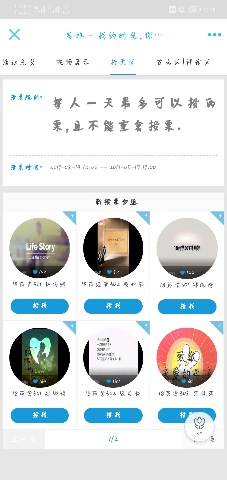 此次活動面向藥學系全體學生,于5月2日開始征集視頻,要求參賽人員通過簡單的影像記錄,展現生活中平凡而偉大的母親,作品積極向上,表達出濃濃母愛。此次比賽共征集到17份作品,初賽篩選出十份作品進入易班APP進行為期3天的投票。最終,18中藥302班林殊涵同學獲得一等獎;18藥經管302班黃心茹同學、18藥產301班林巧婷同學獲得二等獎;18藥學301班鄭旖琦同學、18藥學302班張晨敏同學、18藥學305班范桂蓮同學獲得三等獎。
