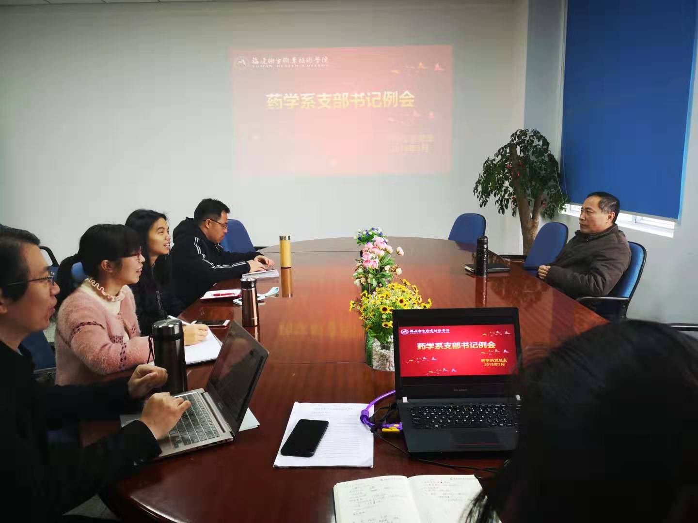 2019年3月19日,藥學(xué)系黨總支在會議室召開三月份支部書記例會。總支委員、支部書記等參加此次例會。