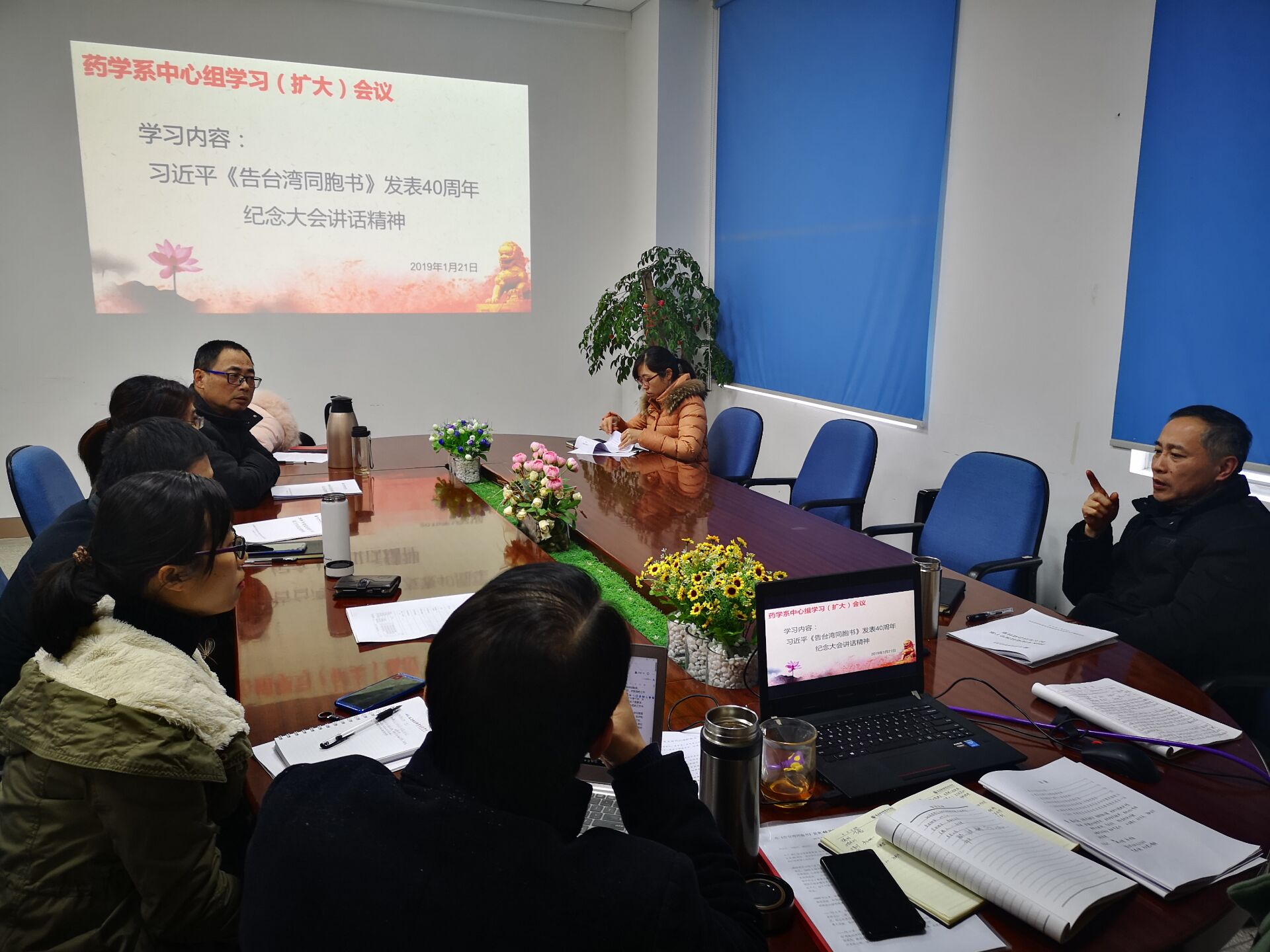 日,藥學系組織中心組學習(擴大)會,主要學習習近平總書記在《告臺灣同胞書》發表