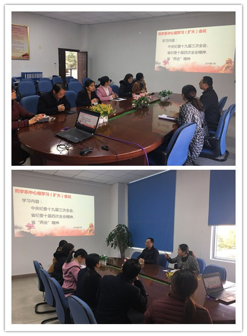 日,藥學系在系部會議室召開中心組學習(擴大)會議,專題學習十九屆中央紀委三次全會、省紀委十屆四次全會精神、省兩會精神