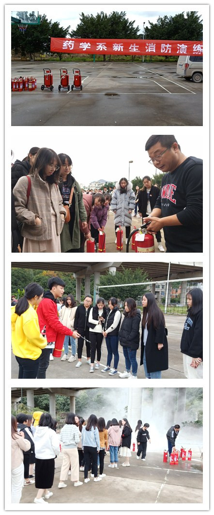 點,由藥學系保衛部組織的火盆演練在籃球場如火如荼開展。出席本次演練的有藥學系黨總支副書記陳潔、團總支副書記尹德愛、輔導員及