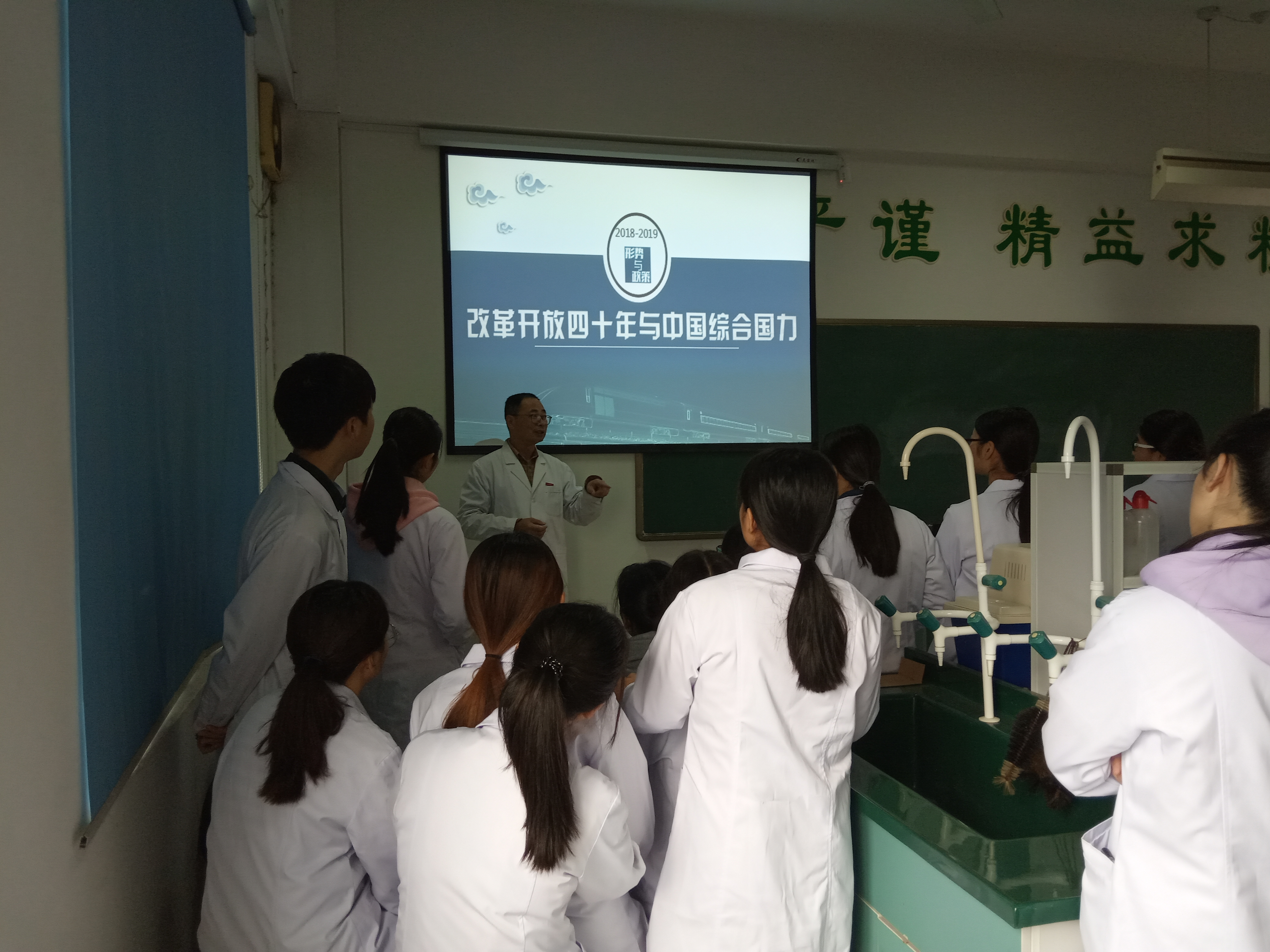 為貫徹落實高校思政工作會議精神,充分發揮領導干部在宣講黨的理論、路線、方針、政策上的示范帶動作用,11月21日,藥學系肖健副主任為17藥學的學生做題為“改革開放四十年與中國綜合國力”的形勢政策課。