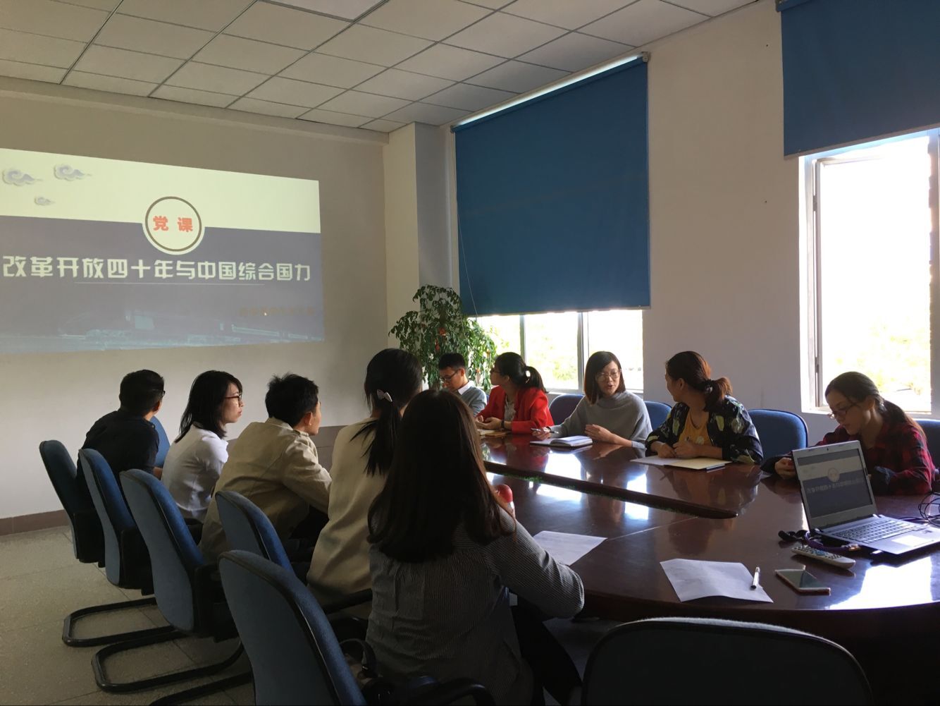 2018年是貫徹黨的十九大精神的開局之年,也是改革開放40周年,為慶祝改革開放40周年,2018年10月17日,藥學系學生黨支部書記蘇素嬌在藥學系會議室做《改革開放四十年與中國綜合國力》的專題黨課學習,學生黨支部全體黨員參加了此次學習。