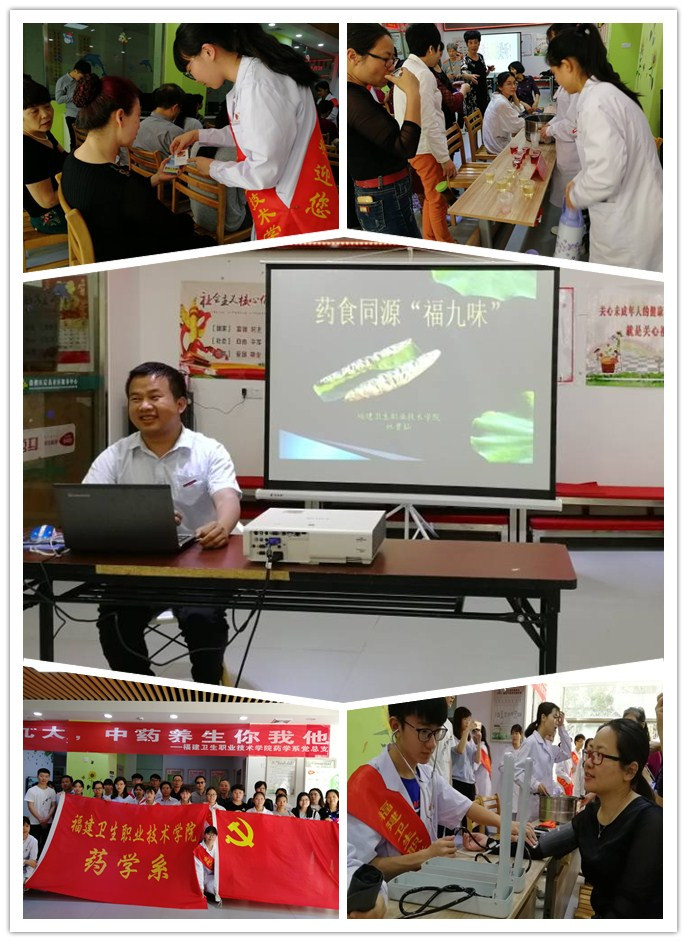本次活動的主要內(nèi)容有健康宣教、健康體檢、健康咨詢等。入黨積極分子為社區(qū)居民免費(fèi)測量血壓,進(jìn)行防控傳染病的知識宣教;黨員和部分積極分子則為居民宣講福九味中藥的相關(guān)知識,并為前來參加的居民提供免費(fèi)的中藥養(yǎng)生茶飲,發(fā)放中藥驅(qū)蚊香囊和藥膳撲克牌。