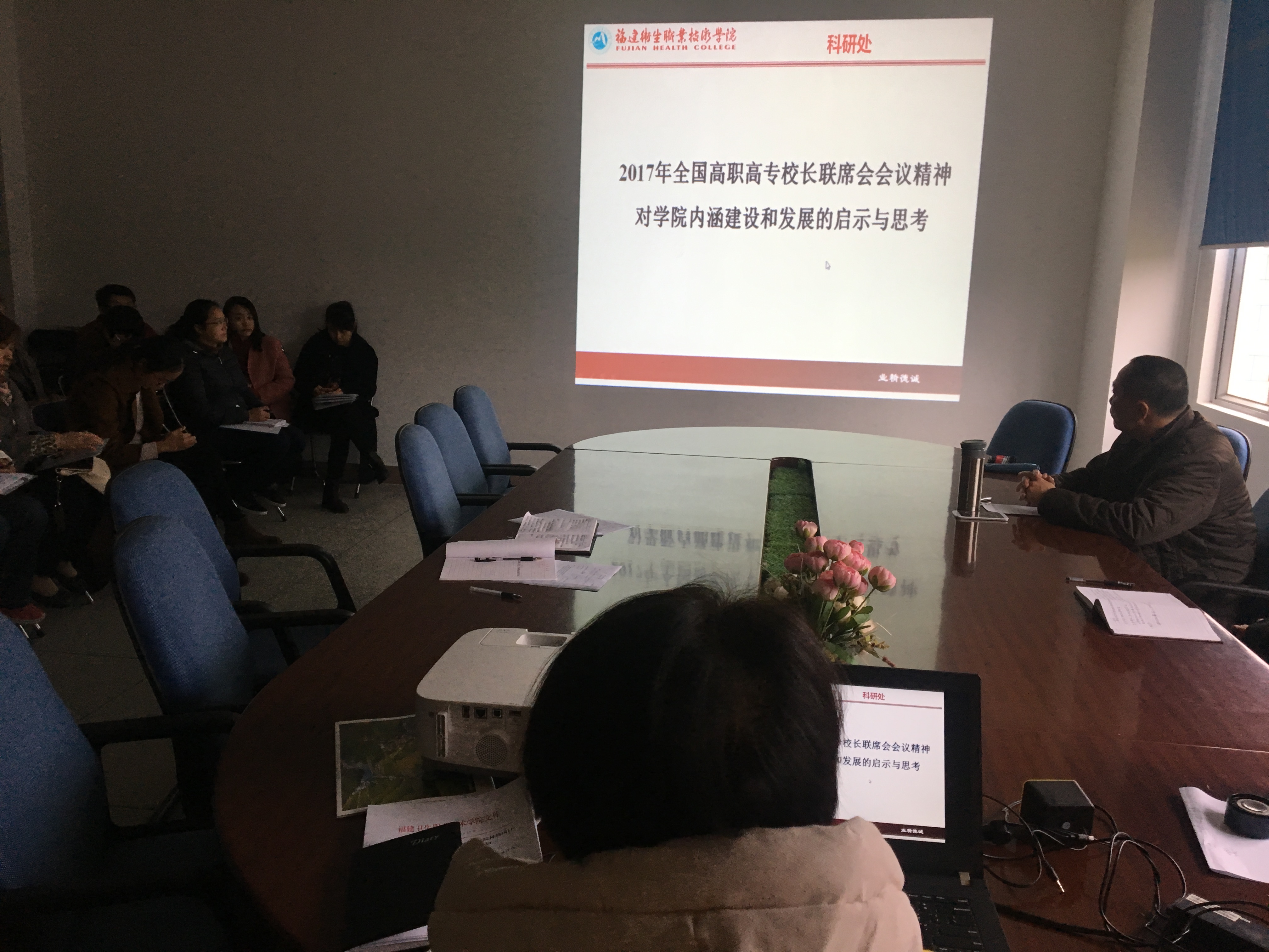 為進一步推動高職高專教育健康穩步發展,交流全國高職高專院校在質量提升、創新發展,以及服務國家戰略中所取得的經驗與成果,共同探討新階段高等職業教育的發展路徑,全國高職高專校長聯席會議2017年年會于日前在江蘇常州順利召開,我院科研處朱扶蓉處長作為代表出席了會議。12月14日下午,為響應黨的十九大后新時代對高職教育的新要求,我系邀請朱處長到我系做《2017年全國高職高專校長聯席會會議精神對學院內涵建設和發展的啟示與思考》講座,藥學系全體教職工參加本次學習。