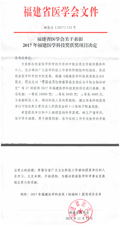 我系“伏立諾他原料及其膠囊劑的開發”項目喜獲2017年福建省醫學科技獎三等獎
