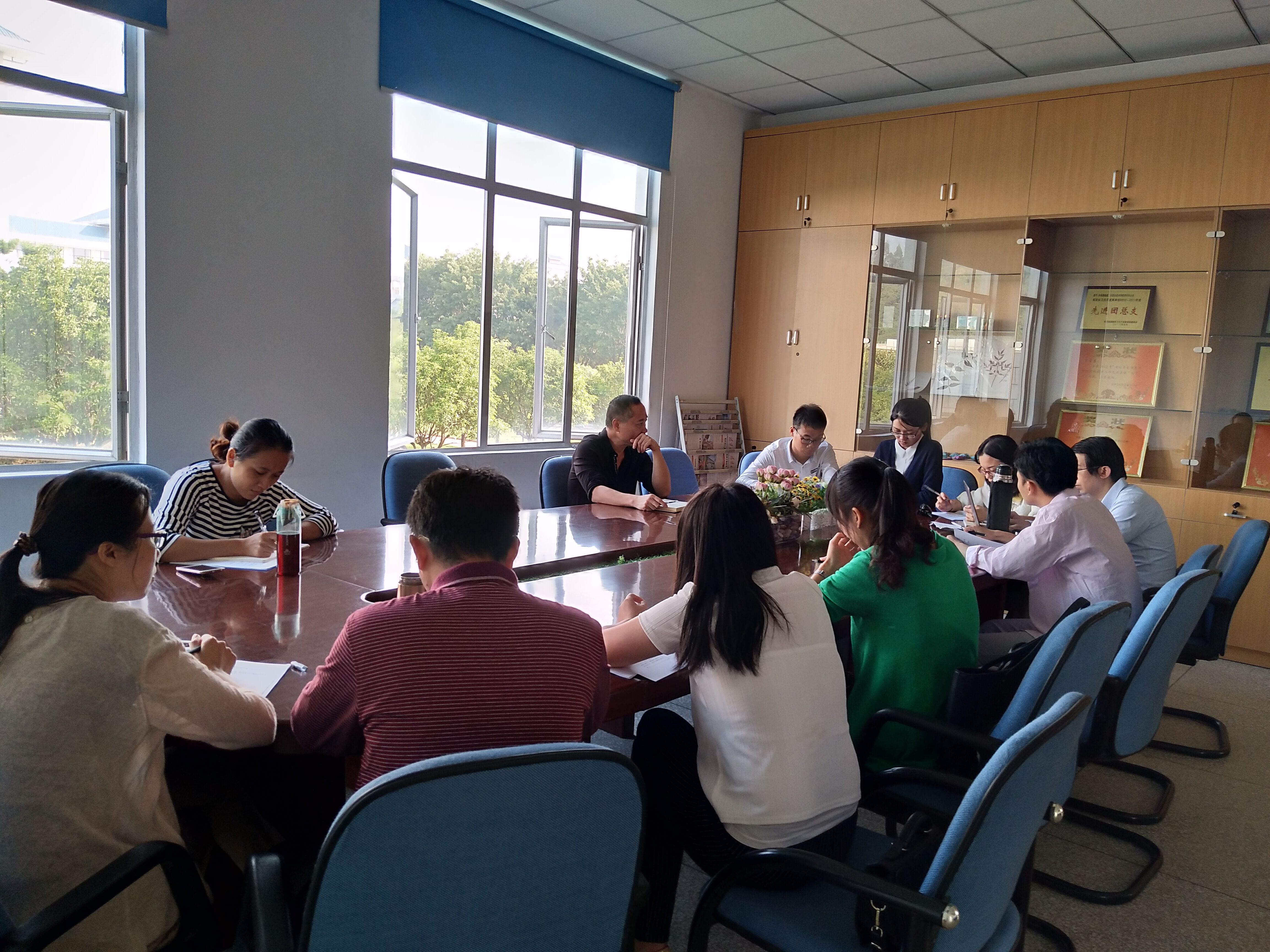 2017年10月24日上午,我系召開思政暨學生意識形態工作專題研討會,黨總支書記鄭力宏、副書記陳潔、總支委員李泳寧、何舒瀾、葉雅沁及全體輔導員參加了會議,會議由黨總支書記鄭力宏主持。