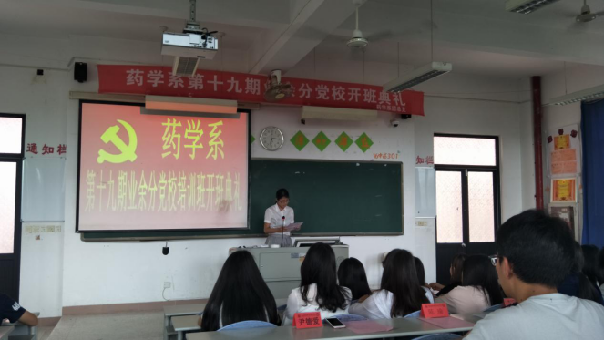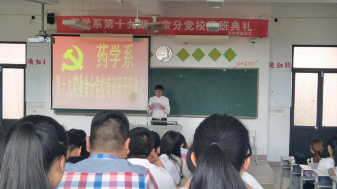 2017年5月11日下午,藥學(xué)系第十九期業(yè)余分黨校開班典禮在教學(xué)樓209隆重舉行。蒞臨本次大會(huì)的老師有:藥學(xué)系團(tuán)總支副書記尹德愛老師,輔導(dǎo)員李寶珠老師,陳翰老師。
