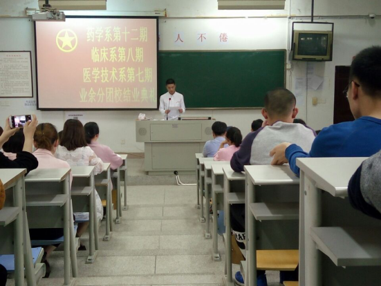 ,由藥學系、醫技系、臨床系聯合舉辦的業余分團校結業典禮在藥學系二階隆重舉行。蒞臨本次大會的老師有:藥學系團總支書記李寶珠老師、藥學系團總支副書記黃嵩梅老師、臨床醫學系團總支副書記陳清清老師、醫學技術系團總支副書記黃玲云老師以及藥學系輔導員胡丹、陳翰、蘇素嬌、尹德愛、高施老師。老師的親臨指導表示了對于學生積極向團組織靠攏積極性的鼓勵與重視。