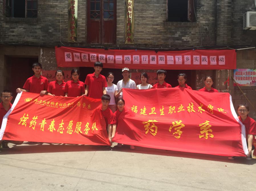 7月4日下午,福建衛生職業技術學院藥學系“炫藥青春”服務隊結束了為期2天的連江縣安凱鄉安海村大學生暑期“三下鄉”社會實踐活動。本次暑期社會實踐活動的主要內容有:分發健康報普及醫療知識,為村民進行測量血壓、血糖、視力的義診活動,發放由黃氏藥業贊助的藥品和具有本系中藥特色的香囊,以及給貧困家庭孩子贈送學習用品。