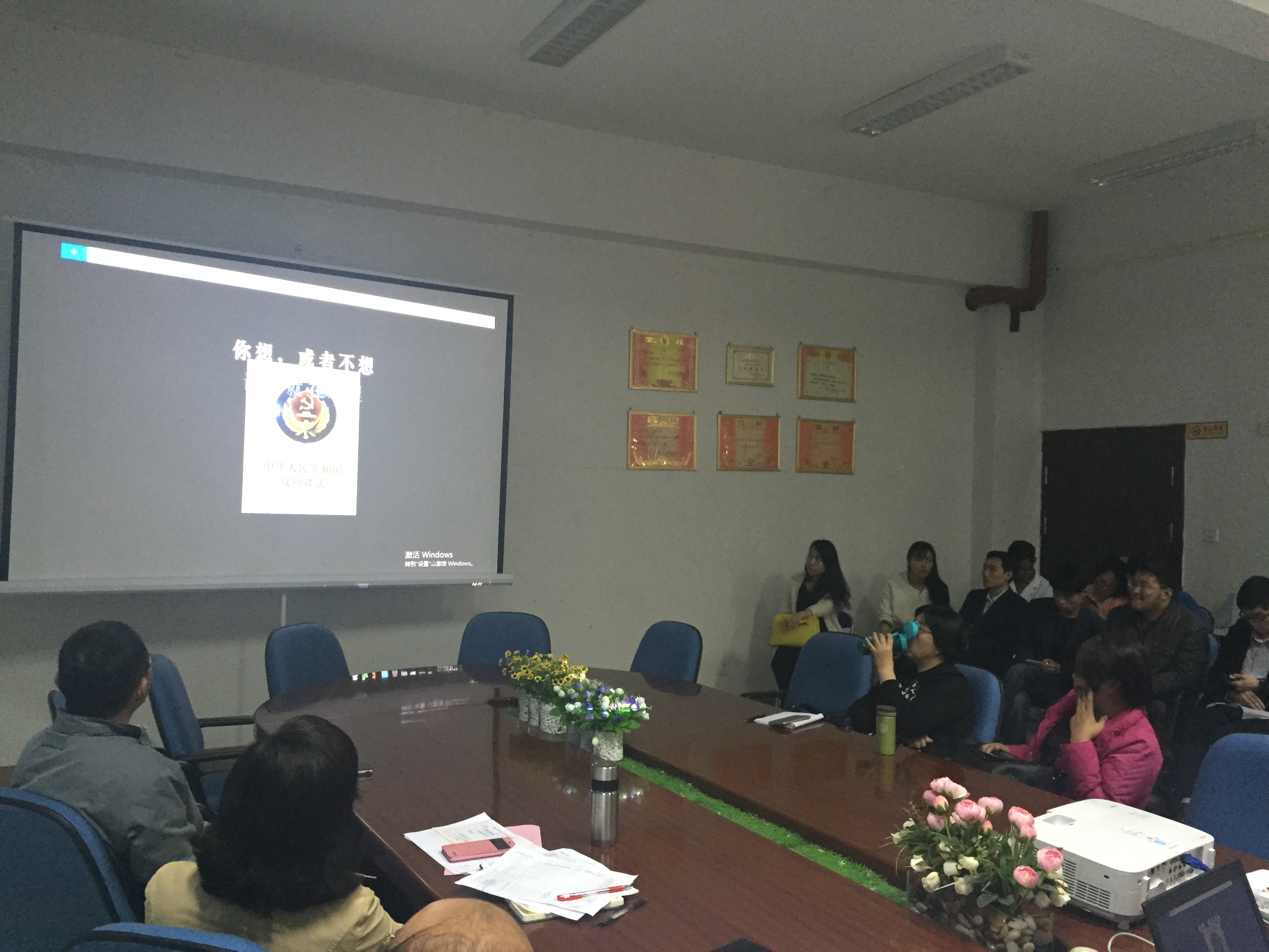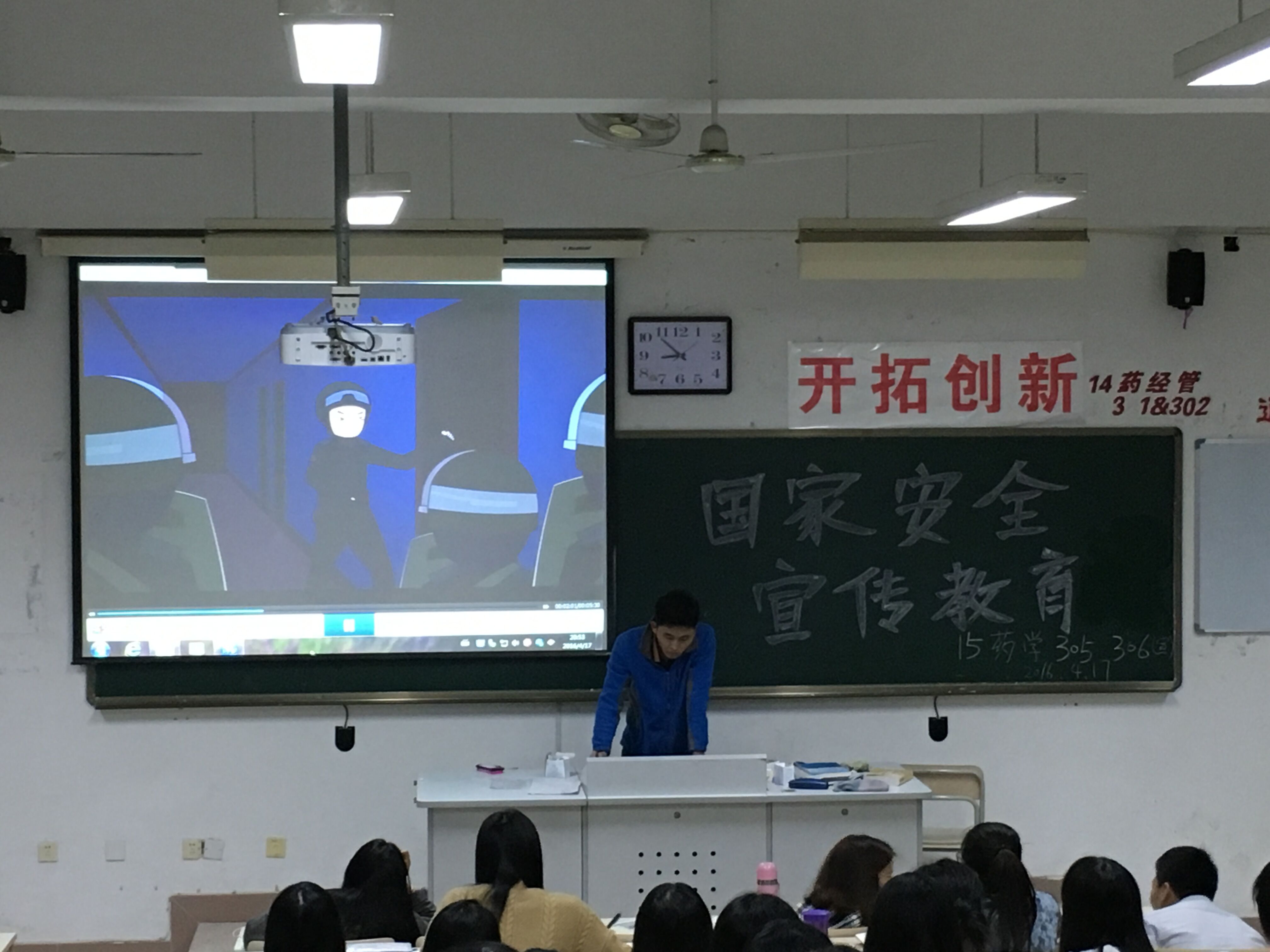 4月19日下午,蘇愛華書記帶領全體教職工學習了《中華人民共和國國家安全法》、《中華人民共和國反間諜法》、《福建省國家安全工作若干規定》等文件。并對三個文件的背景、法律總則、公民和組織的義務和權利、法律責任及附則等多個方面進行了認真地學習,對其中的重點內容進行了逐條講解。之后,組織全體教職工觀看動漫視頻《反間諜風云》、公益廣告《中華人民共和國反間諜法》和微電影《微信陷阱》;4月17日晚上,藥學系各班級召開以“國家安全人人有責”為主題的主題班會,并通過形式多樣的活動向同學們講解《中華人民共和國國家安全法》、《中華人民共和國反間諜法》等法律法規,要求同學們向親朋好友宣傳相關知識,呼吁大家一起堅決與破壞國家安全的行為作斗爭。