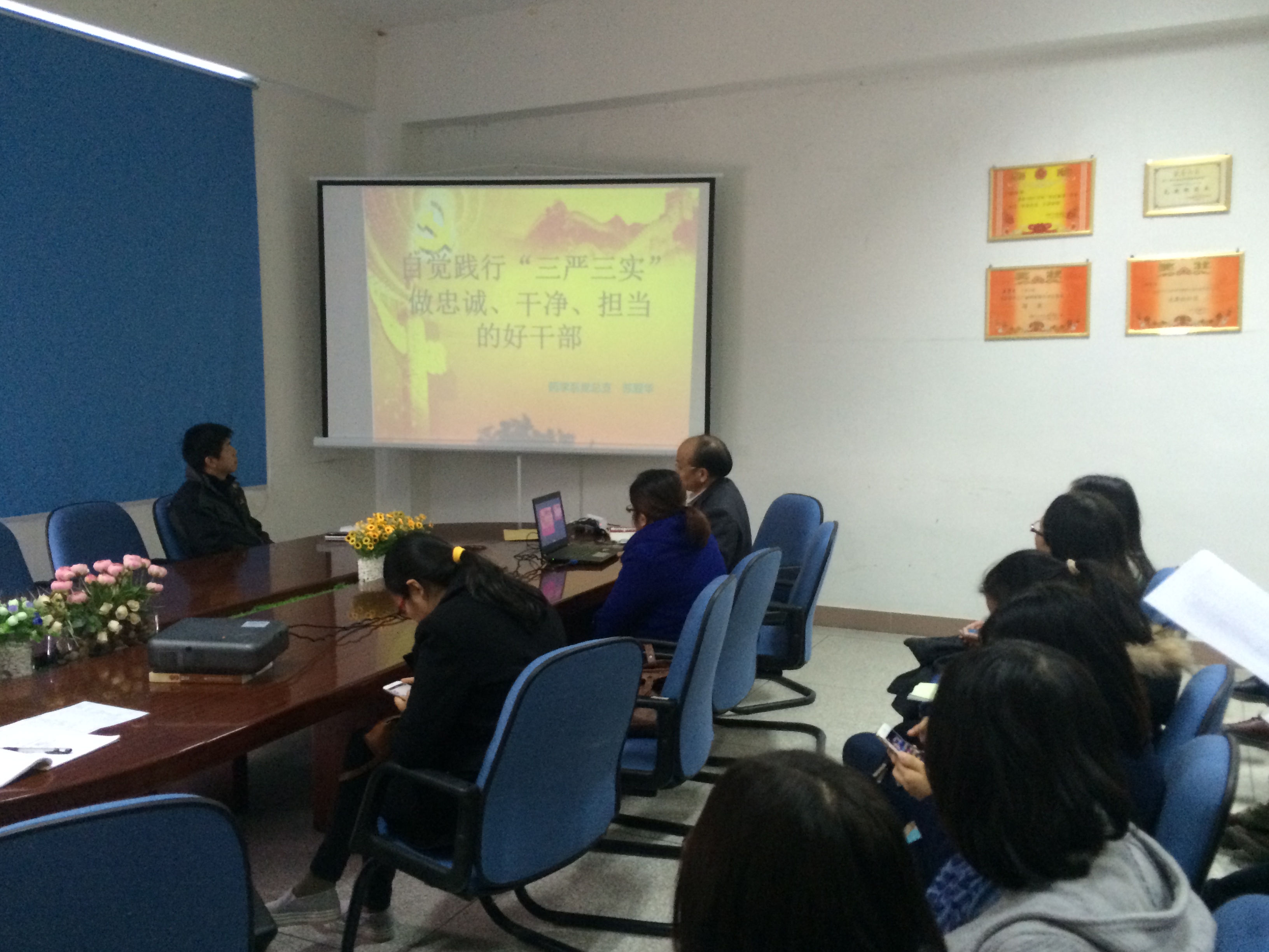 蘇愛華書記對“三嚴三實”的豐富內涵及如何自覺踐行“三嚴三實”的具體要求進行詳細解讀。并結合“三嚴三實”的典型違規案例,指出了在黨員干部中出現的一些“不嚴不實”的現象及危害,要求廣大黨員干部對照“三嚴三實”要求結合自己工作實際,認真開展批評和自我批評,時刻不忘“嚴”和“實”,發揚黨員的先鋒模范作用,積極為學院和系部發展做貢獻。