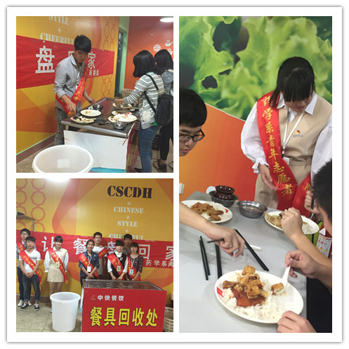 為了培養大學生養成良好的習慣,提高同學們自送餐盤的積極性,藥學系學生會于2015年10月28日在明湖餐廳開展“讓餐盤回家”活動,藥學系兩委會成員積極參與。 通過此次活動,呼吁同學們從我做起,從身邊的小事做起,引導學生自覺回收餐盤,把餐具放回到食堂指定位置的就餐習慣,得到了廣大同學的積極響應,收到了良好的效果。