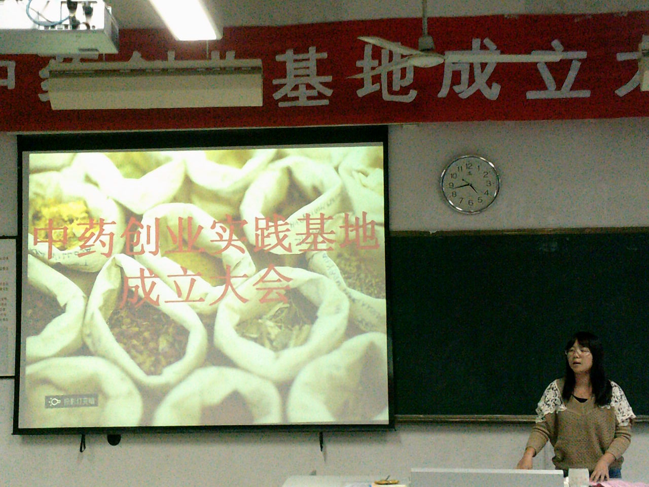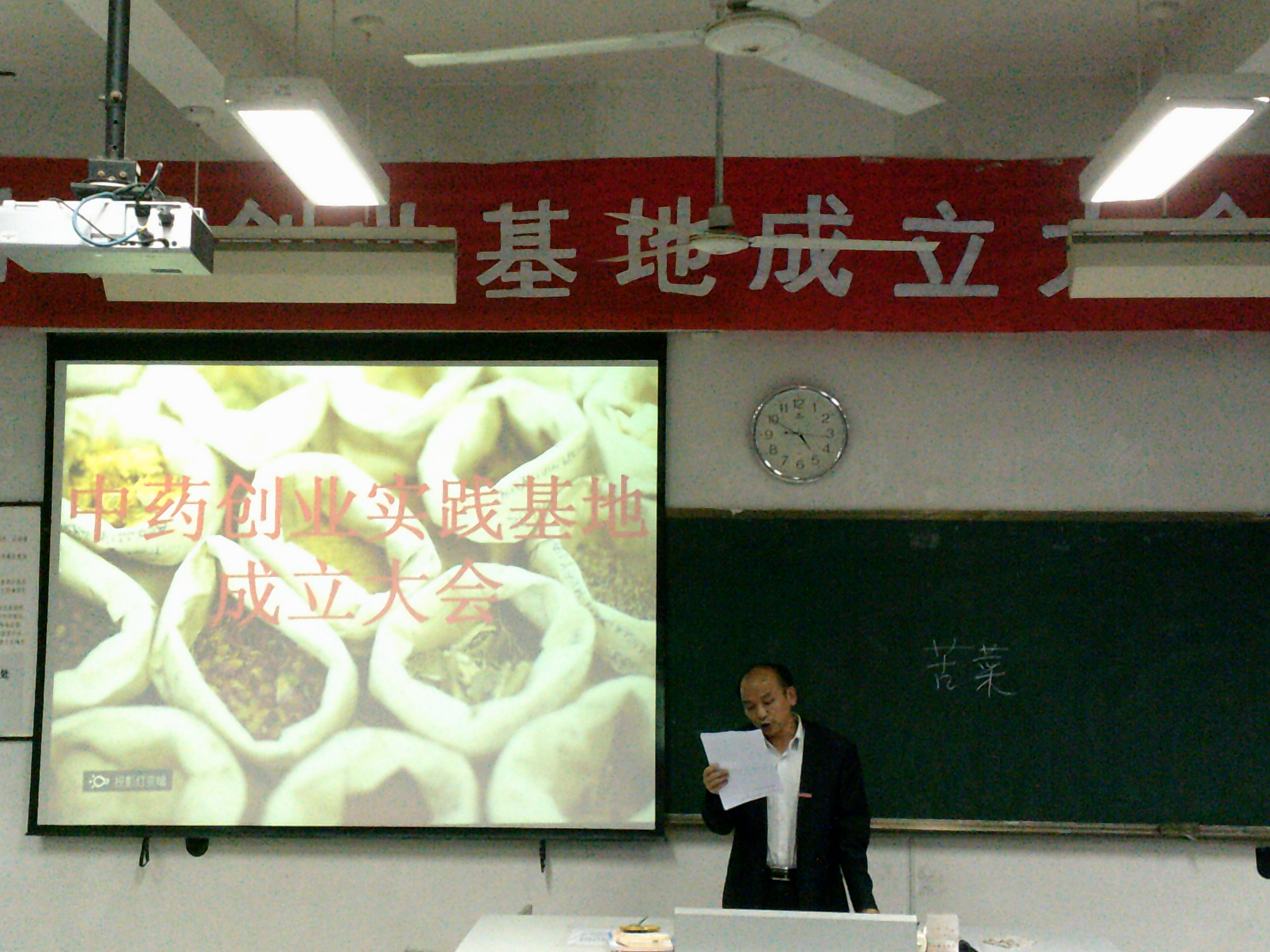 中藥創業基地的成立標志著我系學生文化建設又邁上了一個嶄新的臺階,是一項推進大學生創新創業教育和實踐活動,改進人才培養模式,提高高等教育質量的新嘗試,希望基地成員們能齊心協力、積極向上,共同把中藥創業基地的工作做好。