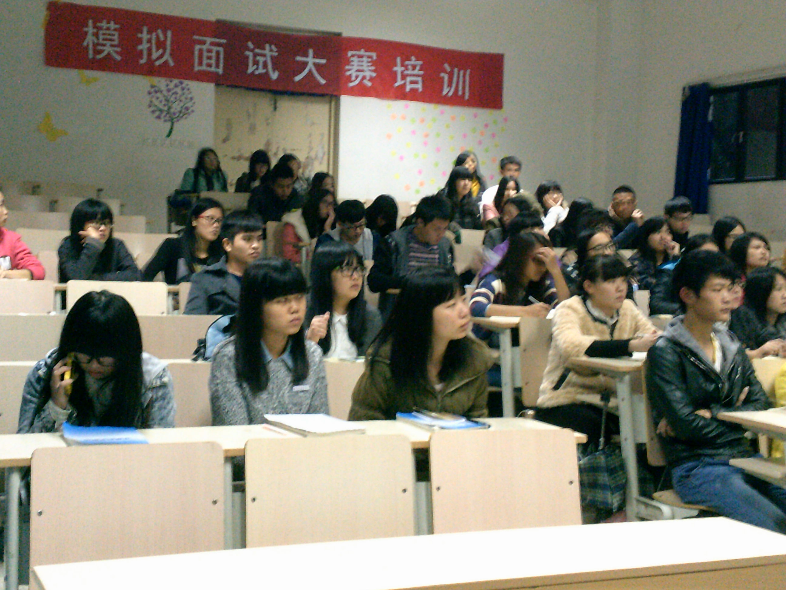 本次有80位同學參加培訓。培訓會上,指導老師詳細講解了簡歷制作和就業面試的技巧,包括簡歷的格式與內容安排、面試前準備、面試著裝、面試禮儀、自我介紹以及如何回答主考官問題等諸多方面,使同學們受益匪淺。在老師講解的過程中,同學們認真聆聽,勤做筆記,生怕遺漏了哪一個知識點。
