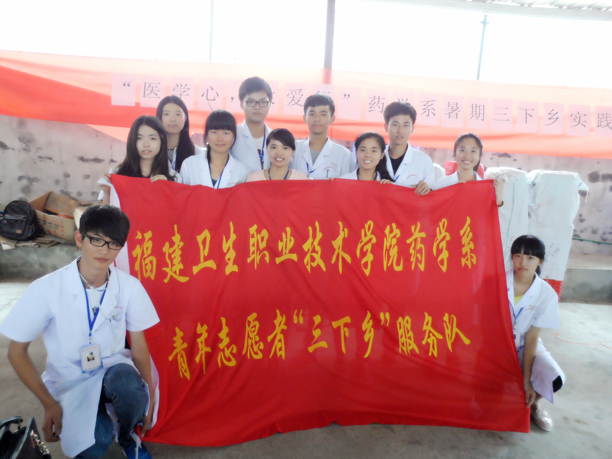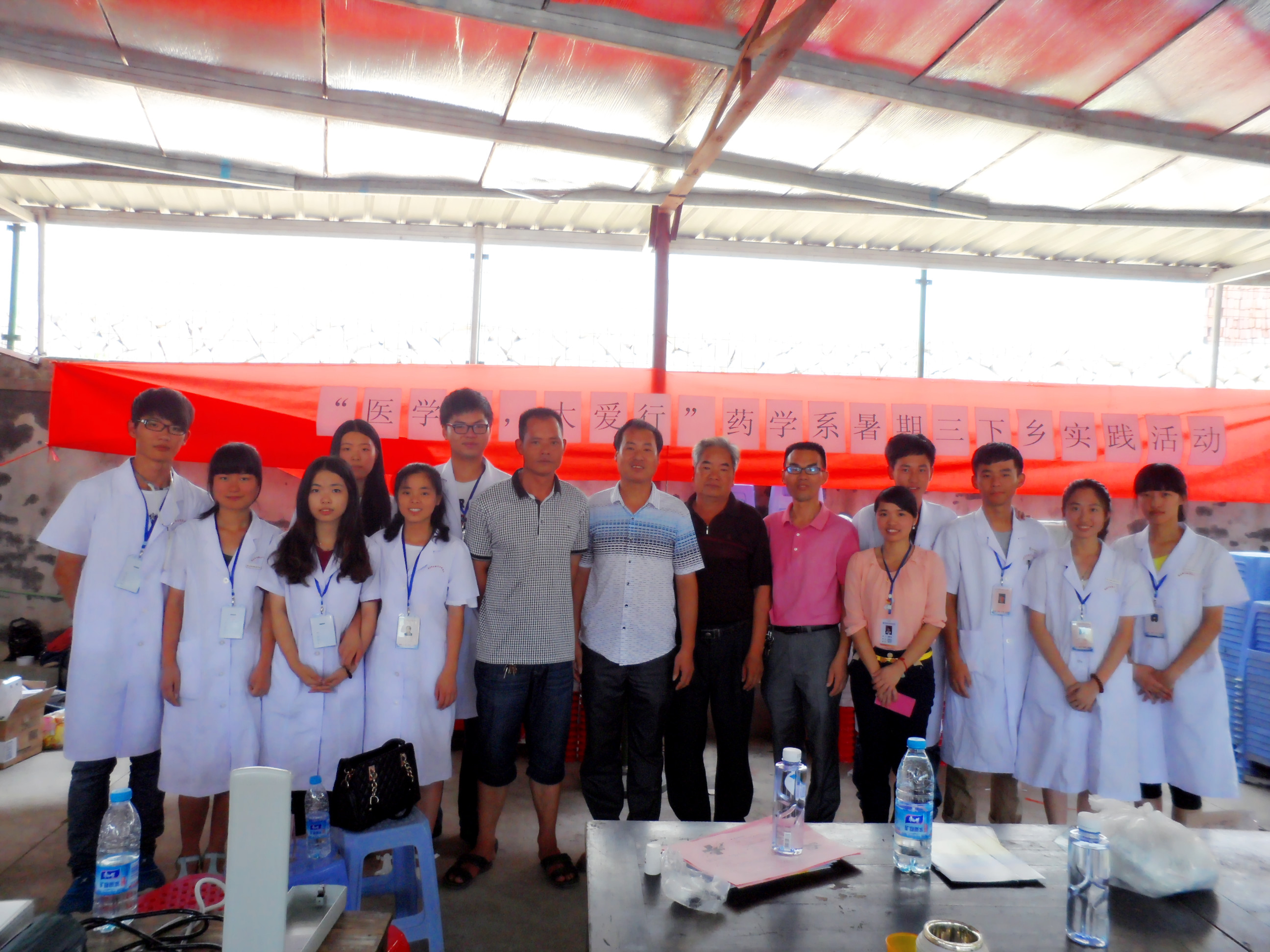 為加強大學生思想道德修養,培養大學生創新精神和實踐能力,拓展素質,充分發揮青年學生科技文化優勢,傳播科學技術和文明新風,為農村經濟和社會發展作出積極貢獻,全面貫徹落實科學發展觀,在院團委和系黨總支的領導下,結合我系實際,由藥學系團總支書記林麗鳳老師帶隊,選拔了10名優秀學生,提前做好準備工作,于7月4日冒著酷暑來到閩侯洋里鄉新見村,開展以“醫學心,大愛行”為主題,主要宣傳用藥安全和基本保健知識,送醫送藥送衛生的暑期三下鄉社會實踐活動。