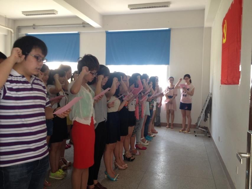 2014年6月30日上午8:30,“藥學系新黨員入黨宣誓儀式”在藥學系會議室隆重舉行。參加此次活動的有藥學系黨總支書記蘇愛華,副書記林穎峰,系各黨支部書記和全體參加新黨員入黨宣誓的溫輝輝等44名學生。