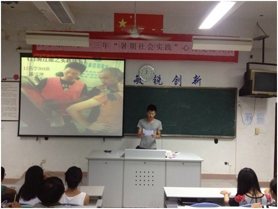 藥學(xué)系暑期社會(huì)實(shí)踐心得交流大會(huì)于9月25日晚7:30在系二階教室召開,系團(tuán)總支書記王鈍銳老師,系團(tuán)總支副書記林麗鳳老師,輔導(dǎo)員李寶珠老師出席本次交流會(huì),今年藥學(xué)系暑期社會(huì)實(shí)踐以“青春共筑中國夢”為主題,把實(shí)踐活動(dòng)與“中國夢”主題教育緊密結(jié)合,各班團(tuán)支部都在上級組織的號召下,圓滿完成今年的暑期社會(huì)實(shí)踐活動(dòng),并取得不錯(cuò)的成績。同學(xué)們在暑期社會(huì)實(shí)踐中找到了理論與實(shí)踐的最佳結(jié)合點(diǎn),在實(shí)踐中受益匪淺。在系部老師的推選下, 7位表現(xiàn)較好的同學(xué)上臺(tái)進(jìn)行實(shí)踐心得交流,與大家分享在社會(huì)實(shí)踐中酸甜苦辣,到會(huì)的2013級同學(xué)聽得很認(rèn)真,深受啟發(fā),紛紛表示今后要多積極參加各種社會(huì)實(shí)踐活動(dòng),親自動(dòng)手親身實(shí)踐,努力鍛煉自己的實(shí)踐和人際交往溝通能力。