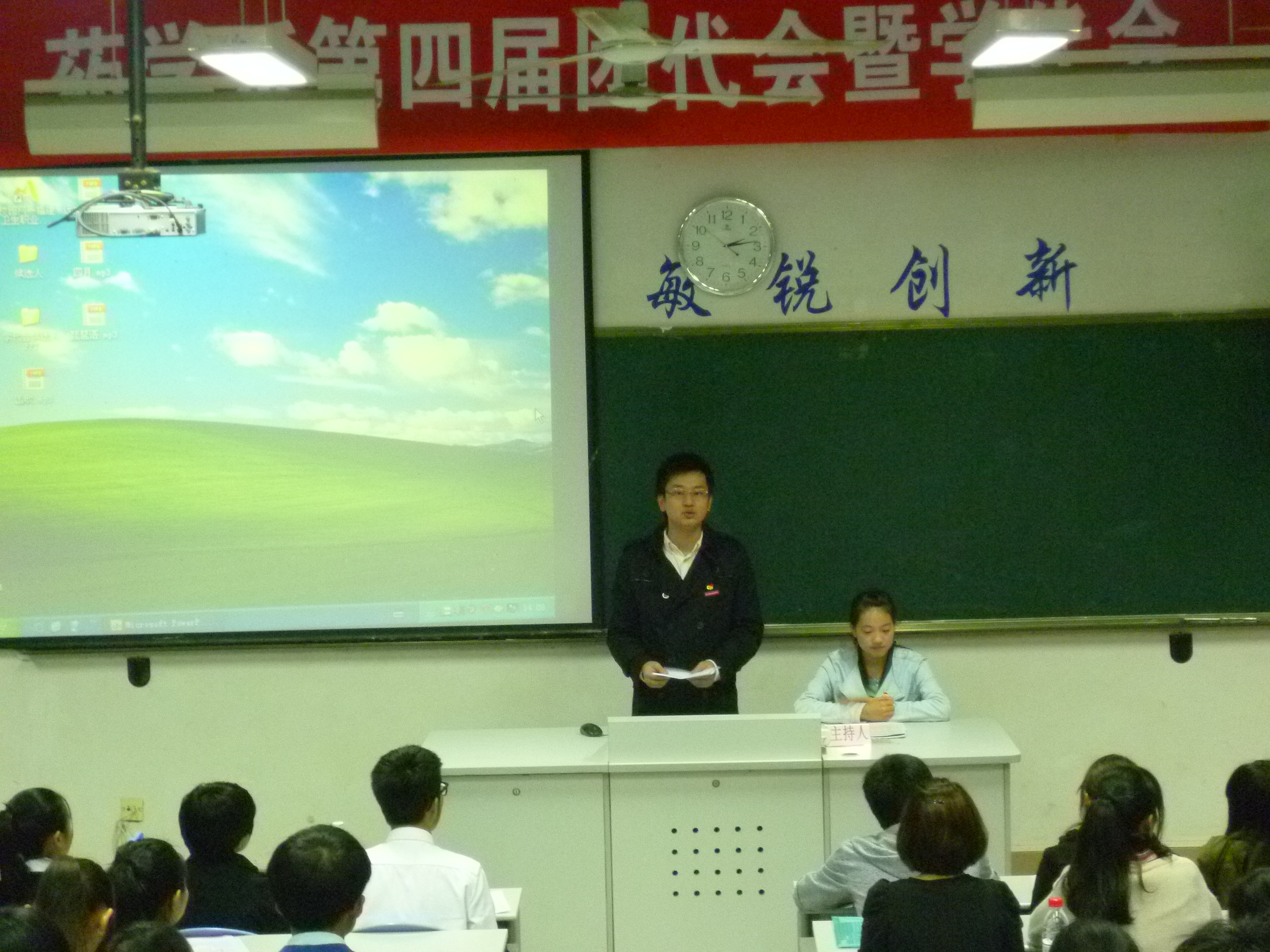 此次大會(huì)在莊嚴(yán)的國歌聲中拉開了帷幕。首先由院團(tuán)委副書記宋維發(fā)表熱情洋溢的賀詞,接著,代表們分別聽取并審議通過了藥學(xué)系團(tuán)總支書記王鈍銳老師、學(xué)生會(huì)主席溫輝輝同學(xué)的工作報(bào)告。大會(huì)按照共青團(tuán)基層組織選舉辦法和學(xué)院團(tuán)委的相關(guān)要求,團(tuán)代會(huì)、學(xué)代會(huì)的代表和候選人均由各班民主產(chǎn)生,充分秉承公平、公正、公開原則,選舉產(chǎn)生8名團(tuán)總支委員、17名學(xué)生會(huì)委員,并順利的完成了大會(huì)的各項(xiàng)預(yù)定任務(wù)。隨后由系黨總支蘇愛華副書記發(fā)表講話,首先對新一屆當(dāng)選委員的同學(xué)表示祝賀,接著對新一屆的團(tuán)委會(huì)、學(xué)生會(huì)提出了新的要求,鼓勵(lì)學(xué)生積極參加學(xué)雷鋒活動(dòng)從身邊小事從點(diǎn)滴做起,希望藥學(xué)系團(tuán)學(xué)工 作能在廣大團(tuán)學(xué)干部帶領(lǐng)之下百尺竿頭更進(jìn)一步,把藥學(xué)系的團(tuán)學(xué)工作推向更高的臺(tái)階。
