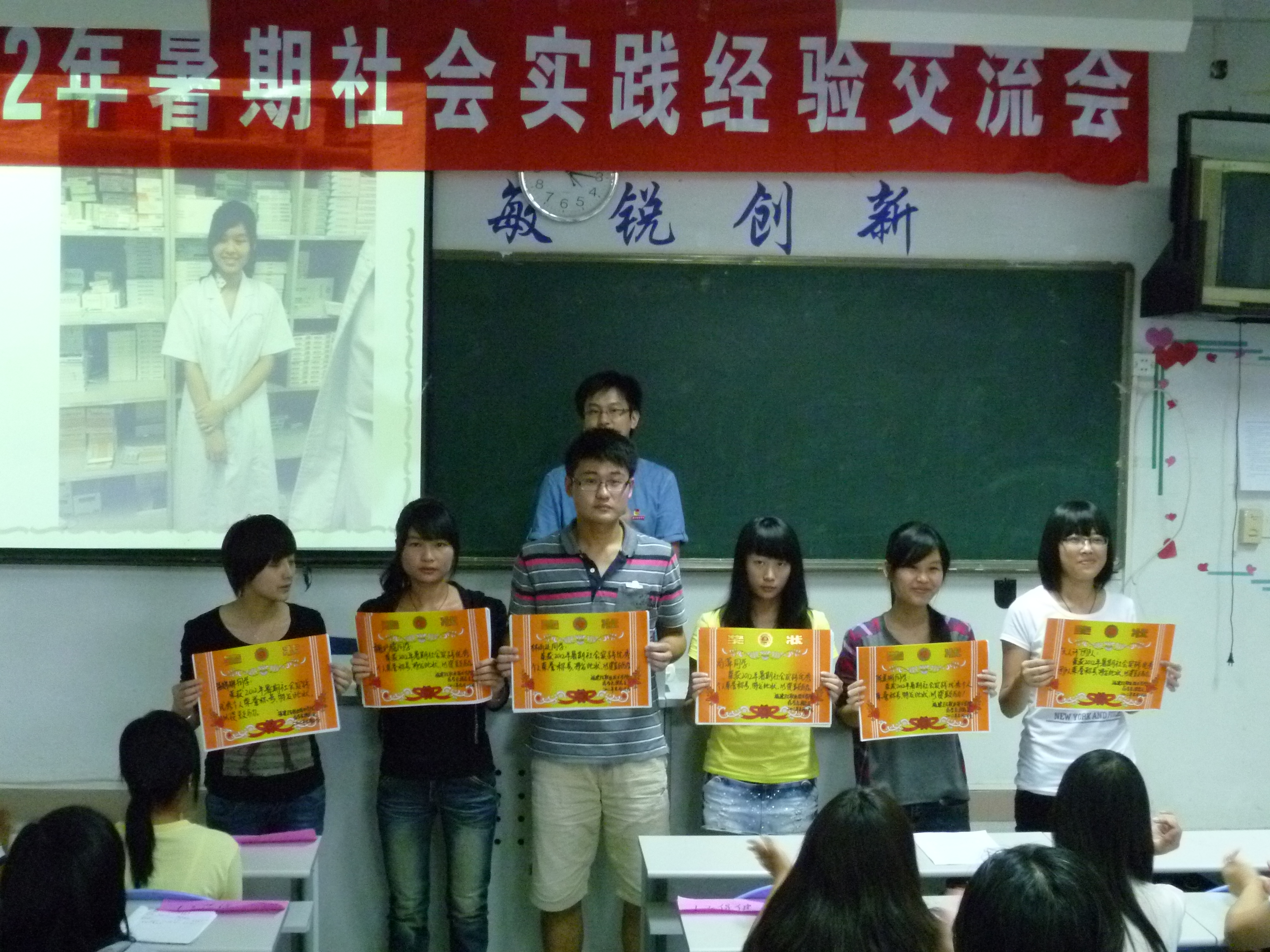 藥學系于9月25日下午在藥一階舉行“2012年暑期社會實踐經驗交流會”。魏立娜副院長、院團委宋維書記、系團總支書記王鈍銳老師以及我系輔導員出席了本次交流會。