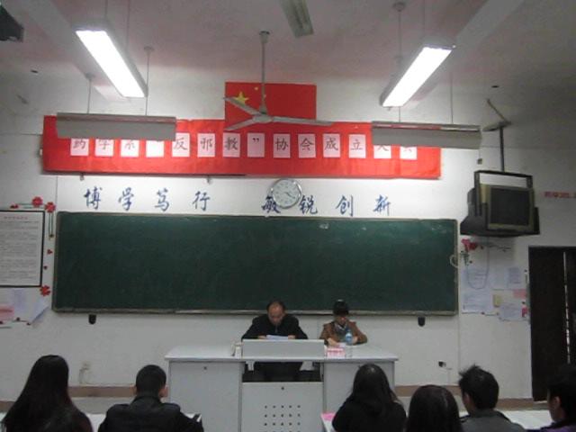 我系于12月13日下午在藥學系第一階梯教室舉行“藥學系反邪教分會成立大會”,系黨總支蘇愛華副書記,系行政秘書陳潔老師,系第一黨支部葉雅沁老師,系團總支王鈍銳書記,系團總支陳炳秀副書記以及系部輔導員出席本次會議。