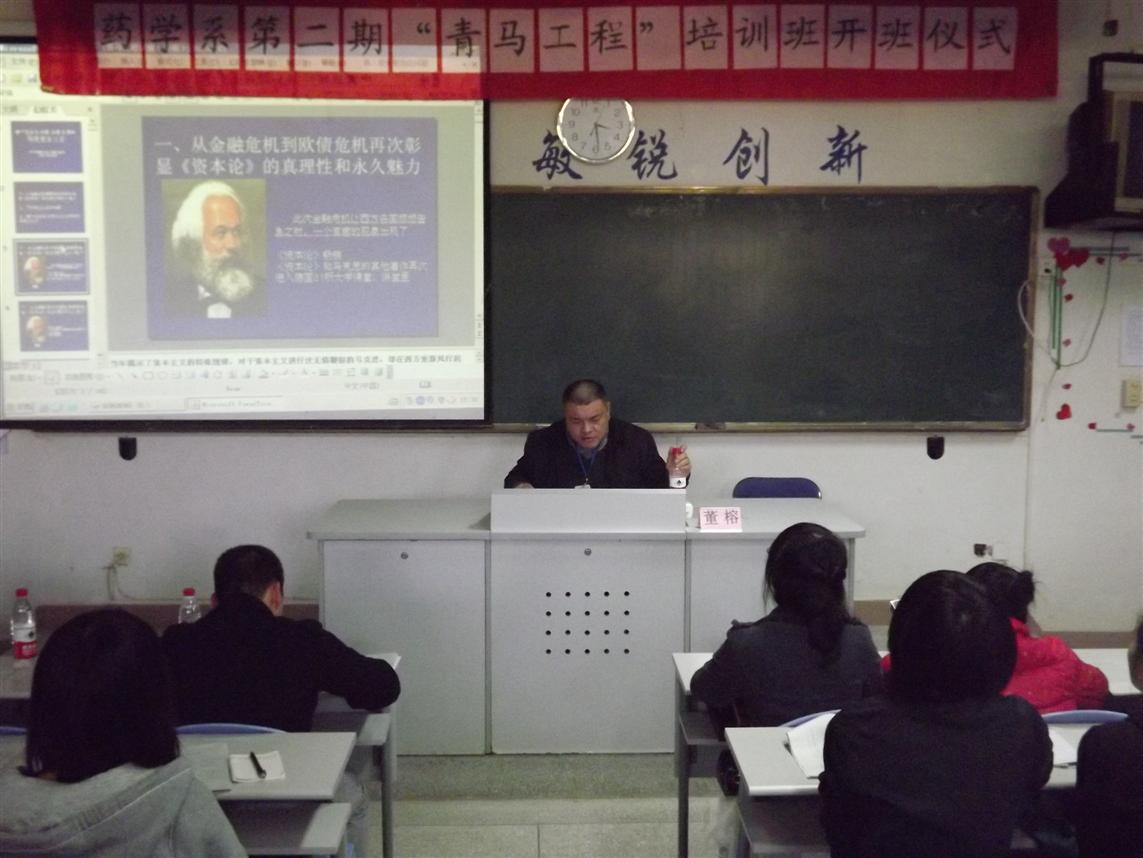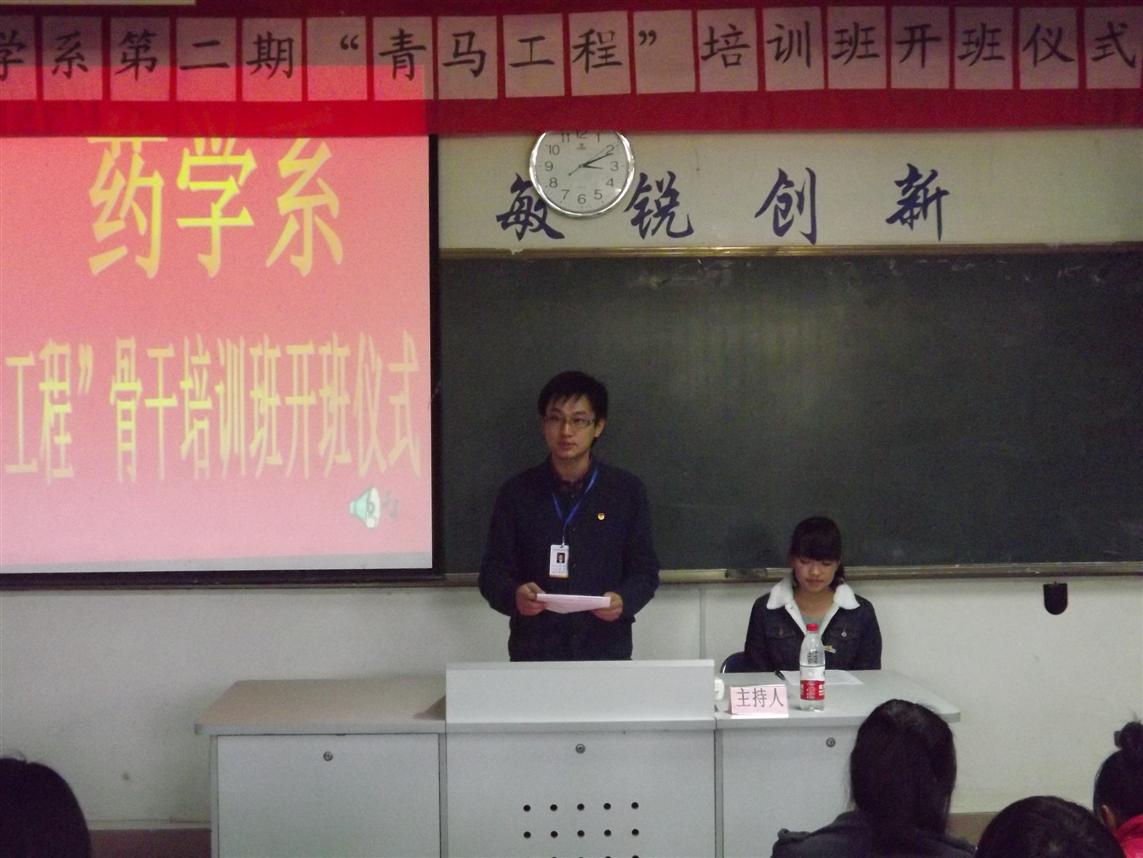 開班儀式在莊嚴的國歌中拉開了序幕。首先系團總支書記王鈍銳老師宣讀第二期青馬工程培訓班學員名單和“青馬工程”培訓班守則,并希望同學們能夠自覺遵守;接著,學員代表鄭彬焮同學發言,她號召廣大學員珍惜此次的學習機會,做一名名副其實的青年馬克思主義者和為同學服務的學生干部;接著,院團委宋維書記希望全體學員能夠深刻理解科學發展觀和社會主義核心價值體系的科學內涵,并用到現實的學習和生活中。最后,藥學系黨總支蘇愛華書記做重要講話,他希望全體學員加強自身的思想教育,不斷提高自身的素質,在同學中起模范作用。
