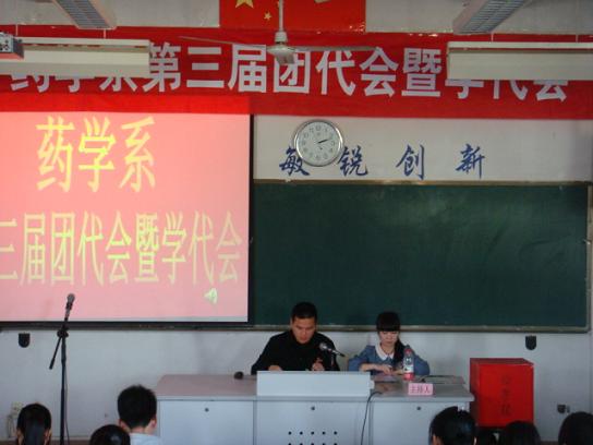 此次大會在莊嚴的國歌聲中拉開了帷幕。會上,由院團委副書記宋維向我系致熱情洋溢的賀詞。接著,代表們分別聽取并審議通過了藥學系團總支書記王鈍銳老師、學生會主席鄭彬焮同學的工作報告。大會按照共青團基層組織選舉辦法和學院團委的相關要求,團代會、學代會的代表和候選人均由各班民主產生,充分秉承公平、公正、公開原則,選舉產生7名團總支委員、17名學生會委員,并順利的完成了大會的各項預定任務。