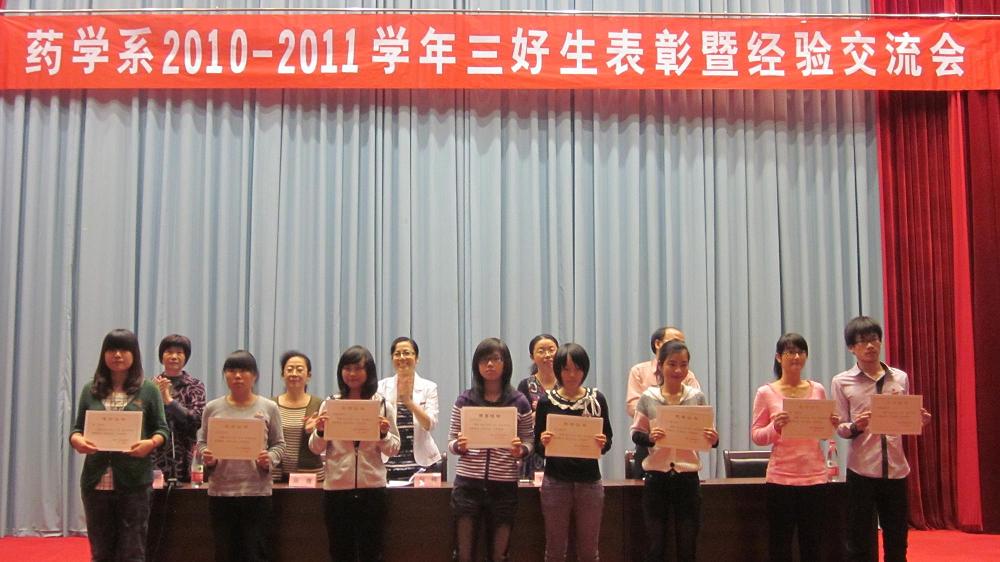 10月25日下午我系在學(xué)院學(xué)術(shù)廳隆重舉行藥學(xué)系“2010—2011學(xué)年三好生表彰暨學(xué)習(xí)經(jīng)驗交流會”。院學(xué)生工作處黃銘珊處長、系倪峰主任、蘇愛華副書記、林小蘭副主任、陳穗副主任、及我系全體輔導(dǎo)員出席了本次大會,大會由林小蘭副主任主持。