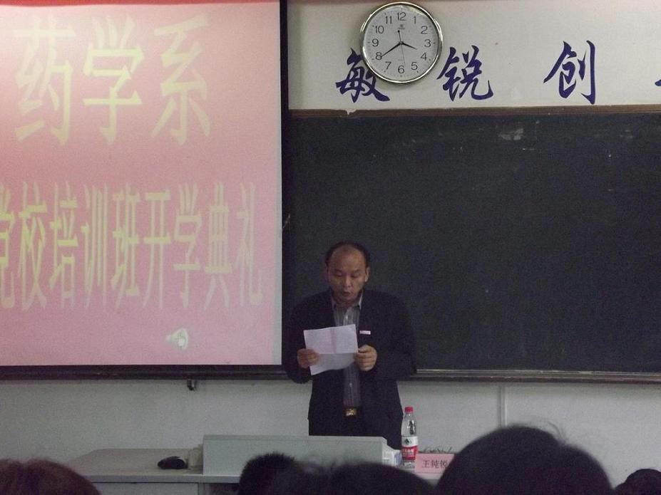 開學典禮在莊嚴地國歌聲中拉開了帷幕。首先,何舒瀾老師宣讀“藥學系分黨校工作實施細則”;隨后,林小蘭副主任宣布第九期業余分黨校學員名單及13人復訓學員名單;接著,學員代表趙庭欽同學發言,她表示今后要以學習黨章、遵守黨章、貫徹黨章、維護黨章為重點,加強自身道德修養,做到理論聯系實際,用黨員標準嚴格要求自己,在校園生活中發揮模范帶頭作用,爭取早日成為一名共產黨員。最后,蘇愛華書記做了重要講話,他希望全體學員在黨校的學習中要做其他同學的榜樣和楷模,對照黨員條件,從嚴要求自己,努力爭取早日加入黨組織。