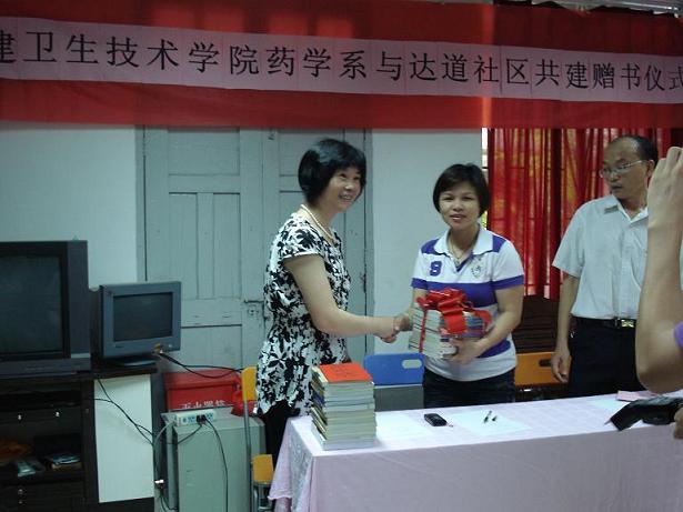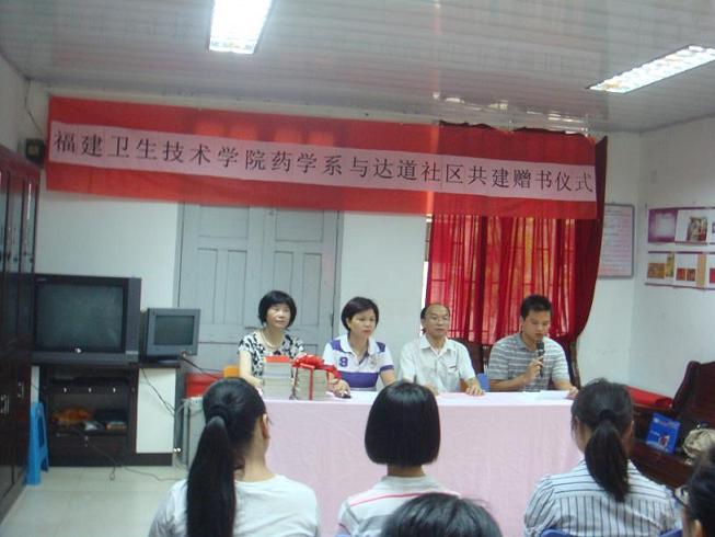 會上,首先由系黨總支蘇愛華副書記致辭,隨后,林小蘭書記與張秀斌主任分別代表學院和社區進行贈書及揭牌儀式。此次我系共向達道社區捐贈圖書900多冊及捐書款600多元,此次共建活動也拉開了我系團總支暑期“三下鄉”社會實踐活動的序幕,充分體現我系黨建帶團建工作的顯著效果,福州新聞網等媒體到現場進行報道。