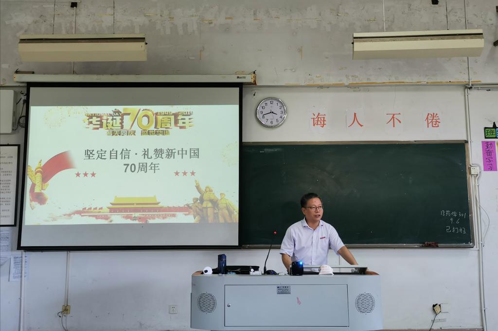 為慶祝新中國成立70周年,進一步增強青少年的獲得感、幸福感、安全感,凝聚和激發同學們的愛國熱情,2019年9月6日,陳貞健副院長于藥二階以“堅定信念,禮贊中國70周年”為主題,為藥學系 2018級學子講授了一堂生動而精彩的形勢與政策課。