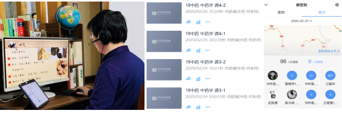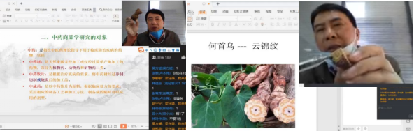 除了專任教師,外聘教師們在中藥教研室教師的協助下,也都開展了良好的在線教學。瑞來春堂的梁守渠老師是《中藥商品學》的任課老師,每次上課時都精心準備了各種中藥材標本,通過直播展示給學生們看,邊展示邊講授,學生反應很好。