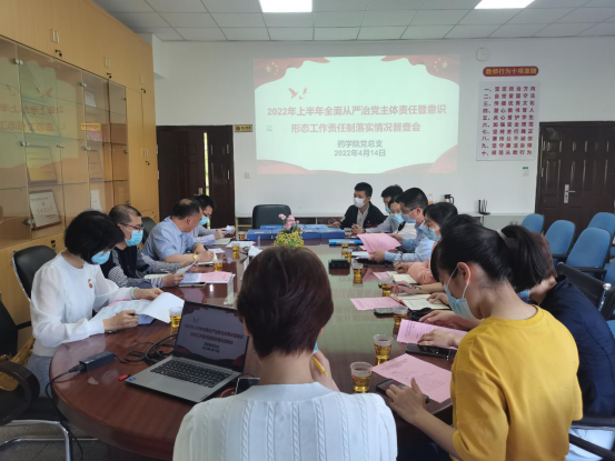 會上,藥學(xué)院黨總支林穎峰書記就藥學(xué)院黨總支2022上半年全面從嚴(yán)治黨主體責(zé)任落實情況、工作特色、亮點,疫情防控情況和藥學(xué)院2022年重點工作推進情況向巡查組做了詳細(xì)匯報。張夢全通報了相關(guān)部門反饋的我院在全面從嚴(yán)治黨方面存在的問題和不足。帶著問題,巡查組成員認(rèn)真查閱了資料,并進行點評和指導(dǎo)。