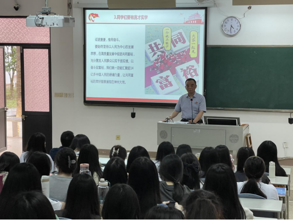 2022年4月14日,學校紀委游鋒書記結合當前發展和形勢,在教學樓110教室為藥學院學生作題為“在接續奮斗中扎實推進全體人民共同富裕”的“開學第一堂思政大課”。