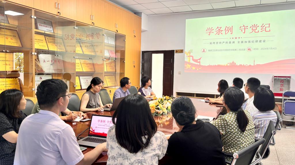 為扎實推進黨紀學習教育,提升全體黨員的黨性修養和紀律意識,7月4日下午,藥學院第二黨支部在藥學院會議室開展集中學習《學條例 守黨紀》的主題黨日活動。此次活動由黨支部書記劉丹丹主持,全體教師黨員參加會議。