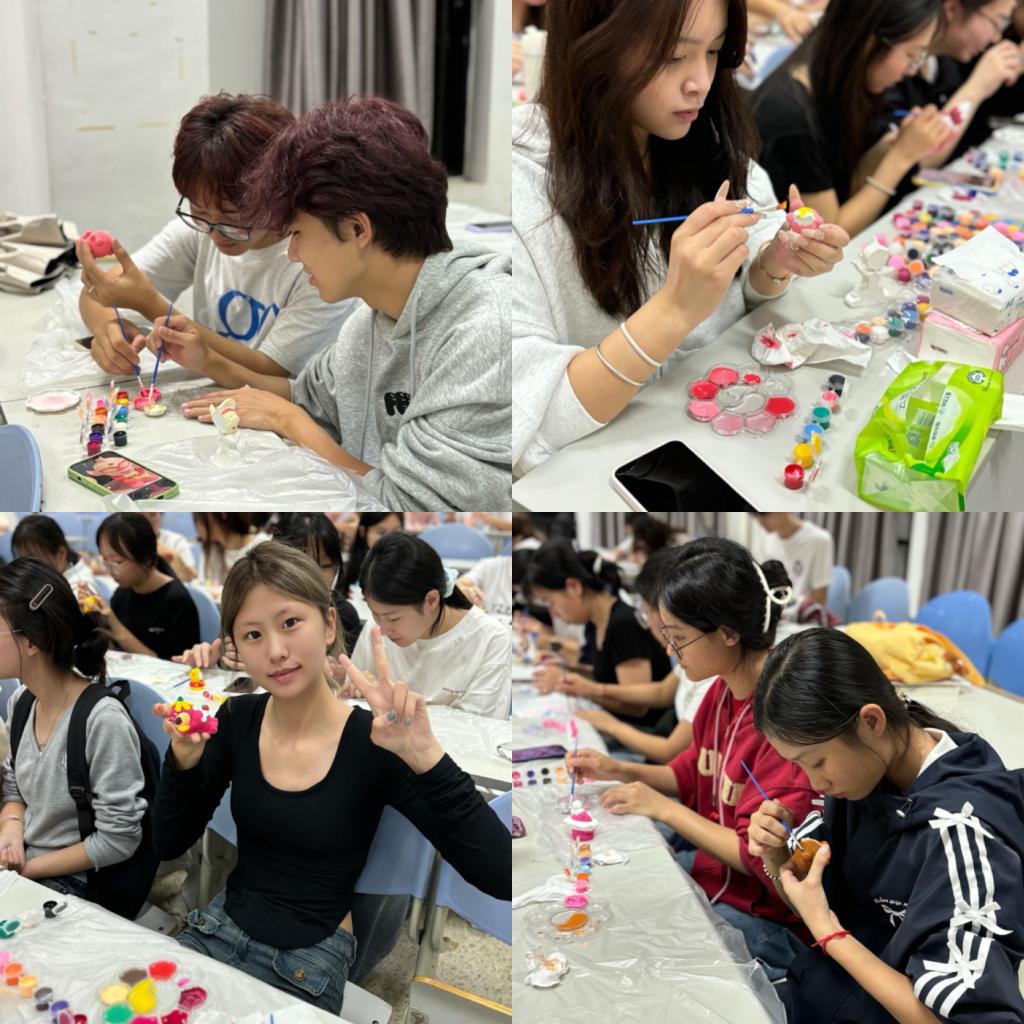 同學們將親手挑選的可愛石膏娃娃,拿起畫筆用五彩斑斕的顏色,盡情揮灑自己的想象力與創造力。在繪畫的過程中暫時忘卻學習與生活的煩惱,讓心靈隨著色彩的流動而自由飛翔。石膏娃娃不僅是親手創作的藝術品,更是心靈解壓的見證者。
