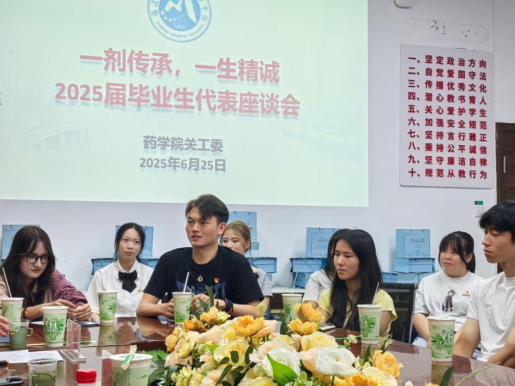 座談會上,藥學院黨委書記葉海親切地向同學們介紹了到場的嘉賓。他的目光一一掠過在座青春洋溢的臉龐,聲音里滿是欣慰:“歡迎同學們實習歸來!看到你們眼中閃亮的光,感受到你們腳下踏實的勁兒,很欣慰!”他勉勵大家把這份寶貴的品質和精神力量,帶到人生新的階段。